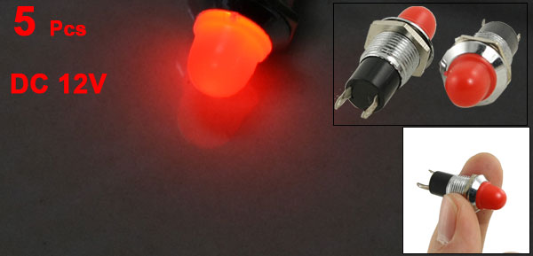 5 Pcs 3/8" Thread Dia. Red Lamp Signal Indicator Pilot Light DC 12V