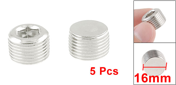 Product Name Hex Head Pipe Plug Color Silver Tone Material Metal Thread Diameter 16mm Thread Size 3/8" PT Hex Side to Side Diatance 8mm/ 0.31" High 11mm/ 0.43" Net Weight 59g Package Content 5 x Hex Head Pipe Plug - Reviews