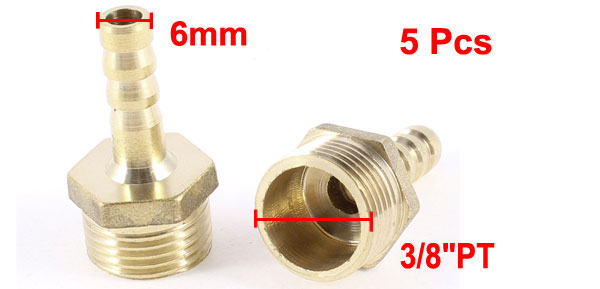 5 Pcs 3/8"PT Male Thread to 6mm Hose Barb Brass Straight Coupling Fitting