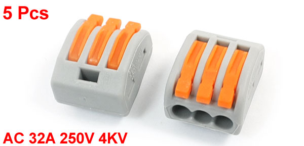5 Pcs 3 Cond Lever Terminal Block AC 250V 32A 0.08-2.5mm2 0.08-4.0mm2