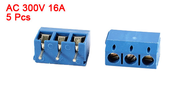 5 Pcs 3 Pin 5mm Pitch PCB Mount Screw Terminal Block Blue AC 300V 16A