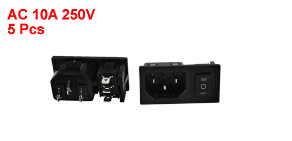 5 Pcs 3 Position 3Pin Rocker Switch IEC320 C14 Inlet Power Socket AC 10A 250V