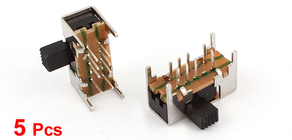 Product Name Slide Switch Contact Type DP3T Terminals Quantity 8 Switch Total Size 16 x 10 x 7mm/ 0.63" x 0.39" x 0.28"(L * W* H) Knob Size 2 x 2 x 5mm/ 0.08" x 0.08" x 0.2" (L * W * H) Material(External) Plastic, Metal Main Color Black, Silver Tone Weight 11g Package Content 5 Pcs x Slide Switches - Reviews