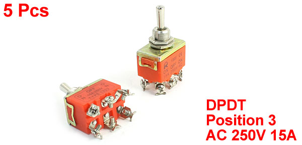 Product Name Toggle Switch Type DPDT (ON/OFF/ON) Position 3 Voltage Current AC 250V 15A