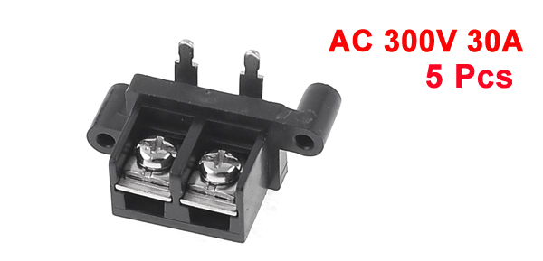 5 Pcs 300V 30A 2 Positions 10mm Pitch Pluggable Terminal Block Black