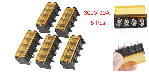 5 Pcs 300V 30A Single Row 4 Postion Covered Screw Terminal Strip