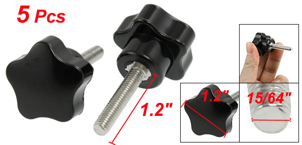5 Pcs 30mm Thread Length 6mm Male Threaded Screw on Star Knobs Black