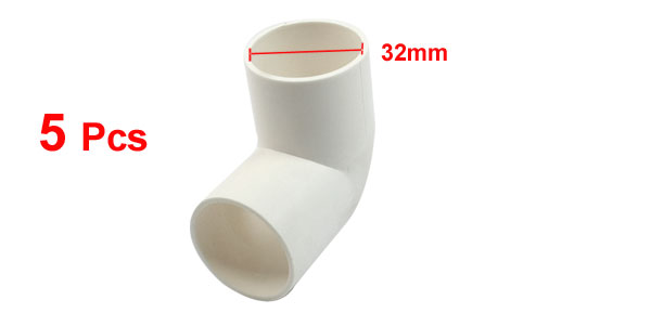 5 Pcs 32mm Inner Diameter 90 Degree Elbow PVC Pipe Connectors White