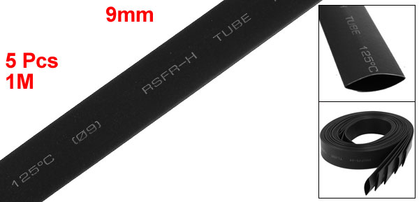 5 Pcs 3Ft 9mm Dia Heat Shrinkable Tube Wire Sleeve Shrinking Tubing Black