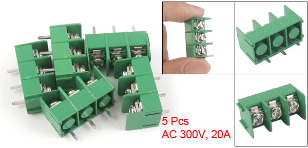 - 5 Pcs 3P AC 300V 20A 7.62mm Pitch PCB Screw Terminal Block