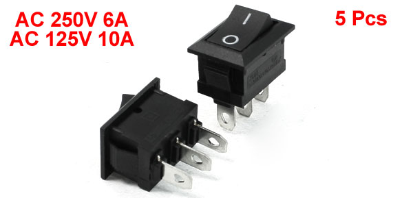 5 Pcs 3P SPDT Black Button Snap in Rocker Switch AC 250V 6A AC 125V 10A