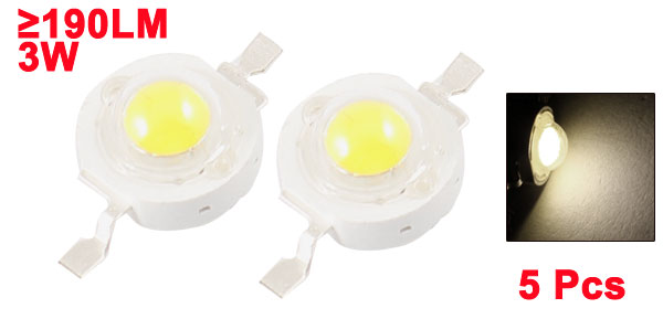 5 Pcs 3W High Power 190LM 2 Pin White Light LED Lamp Diodes Blub Beads
