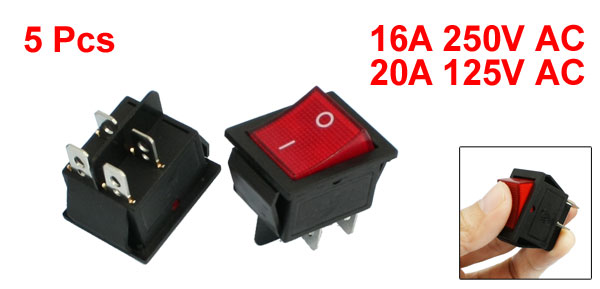 5 Pcs 4-Pin DPST ON/OFF Snap In Boat Rocker Switch AC 16A/250V 20A/125V