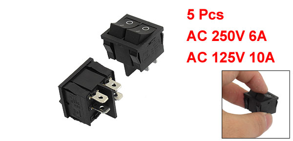 5 Pcs 4 Pin SPST Black Dual Snap in On/Off Rocker Switch AC 6A/250V 10A/125V