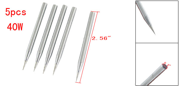 Product Name Soldering Iron Tip Material Metal Power 40W Design Tip Total Length 65mm / 2.56" Shank Diameter 4.5mm / 0.18" Tip Dia 0.6mm / 0.024" Color Silver Tone Weight 40g Package Content 5 Pcs x Soldering Iron Tip - Reviews