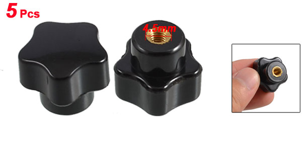 5 Pcs 4.5mm Female Thread Five Pointed Star Knob Handle Black