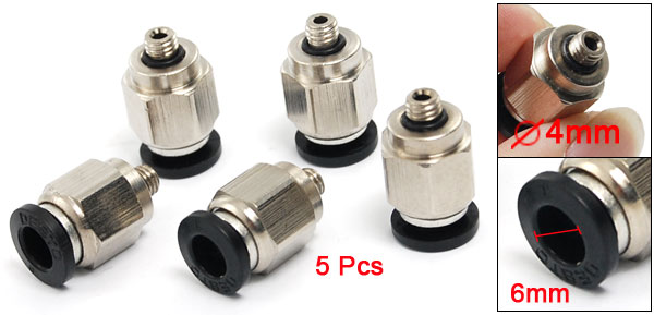 Item Name Quick Fittings Material Alloy, Plastic Color Silver Tone, Black Thread Diameter 4mm/ 0.15" Inner Diameter (Black End) 6mm/ 0.23" Overall Size 21 x 11mm/ 0.8" x 0.4" (L*D) Weight 36g Package Content 5 x Quick Fittings - Reviews
