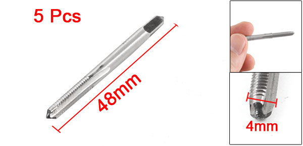5 Pcs 4mm Cutting Dia 3 Flutes HSS Machine Screw Thread Taper Taps