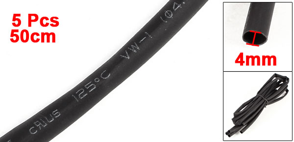 5 Pcs 4mm Dia. Heat Shrinkable Tube Shrink Tubing 50cm Black
