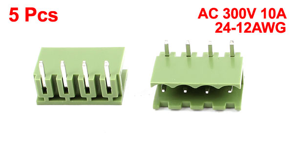 5 Pcs 5.08mm Pitch Right Angle 4pin PCB Pluggable Terminal Block Connectors