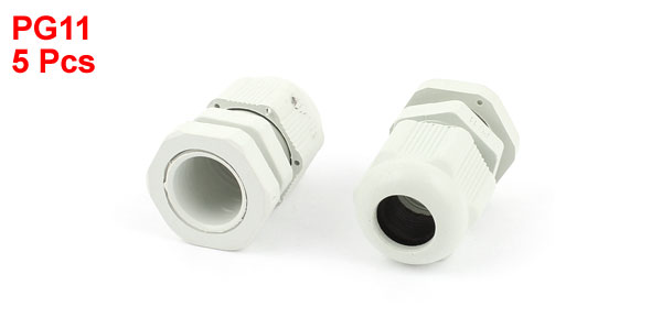 5 Pcs 5-10mm Diameter Cable Gland Plastic Fasteners Joints Connectors PG11 White