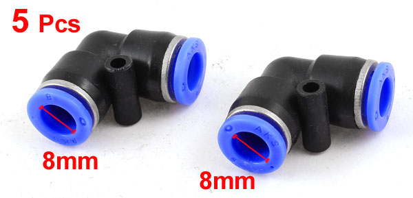 Product Name Quick Fittings Design L Shaped (90 Degree Elbow) Connector Type 8mm to 8mm/5/16" to 5/16" Fit Tube Outside Dia 8mm/0.31"(5/16") Material Plastic Dimension (Approx) 29 x 29 x 15mm/ 1.1" x1.1" x 1.6" (L*W*H) Color Black, Blue Weight 28g Package Content 5 x Quick Fittings - Reviews