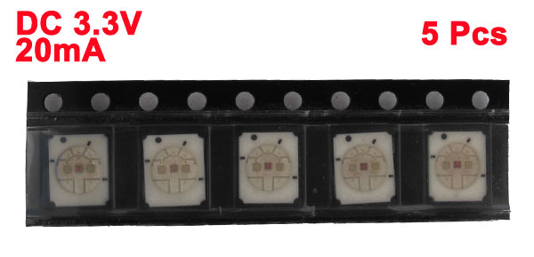 Product Name Light Emitting Diodes Type SMD Size 5.1x 6mm / 0.2" x 0.24"(L*W) Forward Voltage DC 3.3V Forward Current 20mA Light Color Red, Green, Blue Weight 1g Package Content 5 x Light Emitting Diodes - Reviews