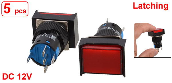 5 Pcs 5 Pins Red Lamp Latching Rectangular Push Button Switch DC 12V