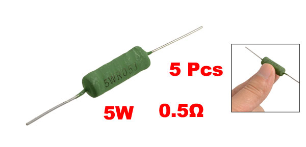 5 Pcs 5 Watt 0.5 Ohm 5% Fixed Wire Wound Power Resistor Resistance