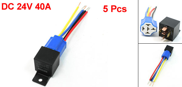 5 Pcs 5-Wires Ceramic Socket Insulation Shell NO+NC SPDT Car Relay DC24V 40A