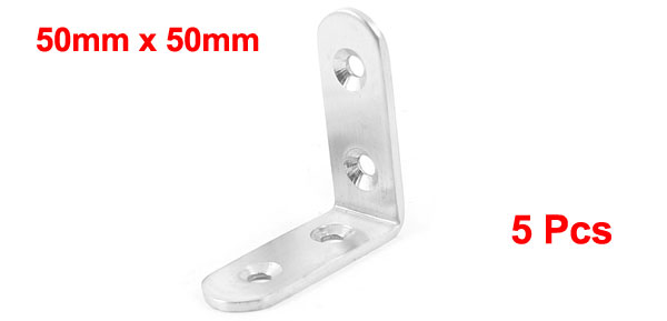 Product Name Angle Bracket Design Round End Material Metal Color Silver Tone Hole Quantity 4 Holes Size 50 x 50 x 3mm/ 2" x 2" x 0.118" (L*W*T) Hole Diameter 5mm / 0.2" Net Weight 92g Package Content 5 x Angle Bracket - Reviews
