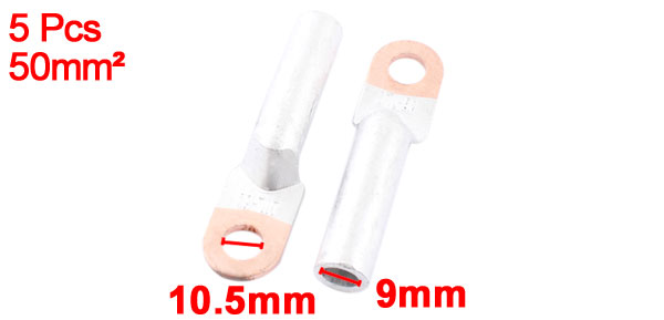 Product Name Lug Cable Connector Copper Terminal Fit Bolt Diameter 10.5mm / 0.4" Connecting Hole 9mm / 0.35" Fit Cable Size 50mm2 Size 81 x 20 x 9mm / 3.2" x 0.8" x 0.35" (L*W*D) Color Silver Tone,Copper Tone Material Copper Weight 107g Package 5 x Lug Cable Connector Copper Terminal - Reviews