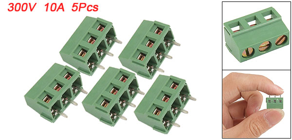 5 Pcs 5mm Pitch 3P Screw Terminal Block PCB Connector 300V 10A
