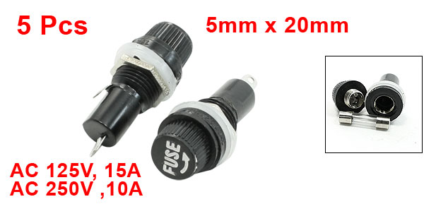 Item Name Panel Mounted Fuse Holder Fit for 5 x 20mm / 0.2" x 0.78" Fuses Maxi. Withstand AC 125V, 15A