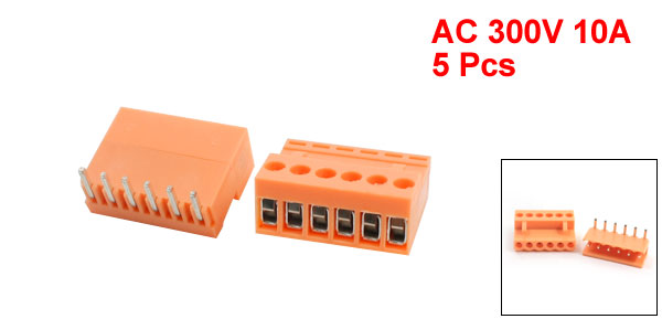 5 Pcs 6-Pin Pluggable Type Orange Plastic PCB Screw Terminal Barrier Block