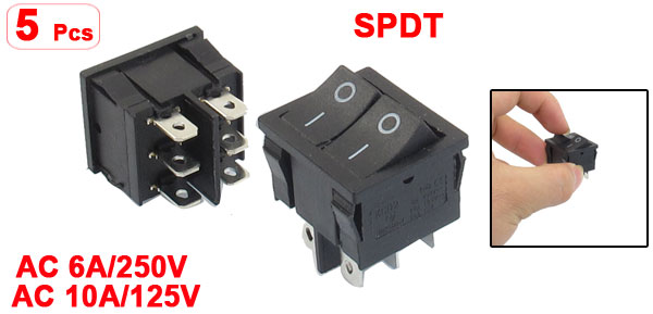Item Name Rocker Switch Type On/On (SPDT) Terminals 6 Pin Voltage & Current AC 6A/250V, AC 10A/125V Overall Size ~25 x 21 x 28cm / 1" x 0.8" x 1.1"(L*W*T) Mounting Hole Size 19 x 19mm / 0.75" x 0.75"(L*W) Color Black Material Plastic & Metal Total Net Weight 41g Package Content 5 x Rocker Switch - Reviews
