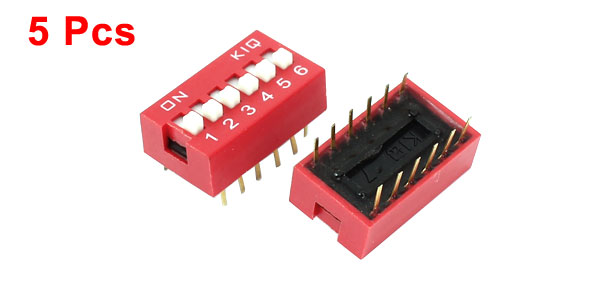 5 Pcs 6 Way 12 Pin 2.54mm Pitch PCB Mounted Piano Type DIP Switch Red
