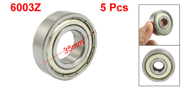 Product Name Deep Groove Ball Bearing Bearing Model 6003Z Bearing Standard(mm) 17 x 35 x 10 Inner Diameter 17mm/ 0.67" Outer Diameter 35mm/ 1.37" Width 10mm/ 0.39" Material Metal Main Color Silver Tone Weight 194g Package Content 5 x Deep Groove Ball Bearings - Reviews