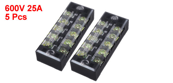 5 Pcs 600V 25A Dual Row 10 Position Covered Screw Barrier Terminal Strip Board