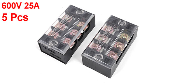 5 Pcs 600V 25A Dual Row 3 Position Covered Screw Barrier Terminal Strip Board