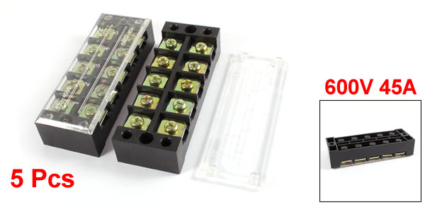 5 Pcs 600V 45A 5 Positions 5P Dual Rows Covered Barrier Screw Terminal Block