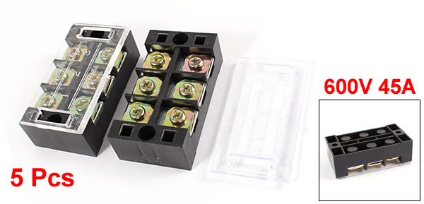 5 Pcs 600V 45A 6Positions Dual Rows Covered Barrier Screw Terminal Block