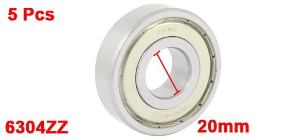 5 Pcs 6304ZZ Shielded Deep Groove Radial Ball Bearings 20mmx52mmx15mm