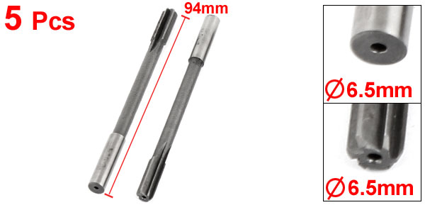 5 Pcs 6.5mm Cutting Diameter 6 Flutes HSS Machine Reamer 94mm Length