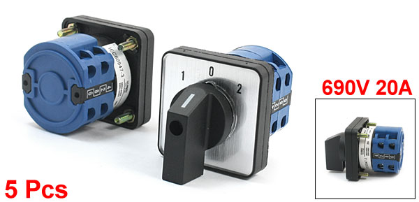 5 Pcs 690V 20A 2-Pole 3-Position Square Panel Mounting Changeover Switch