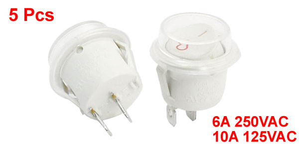 Terminals 2 Pins Position On-Off Rated Voltage 6A 250VAC, 10A 125VAC Overall Size 31 x 25mm / 1.2" x 1" (L*D) Mounting Size 22 x 15mm / 0.87" x 0.6" (L*W) Color White, Clear Material Plastic, Metal Total Weight 30g Package Content 5 Pcs x Rocker Switches - Reviews