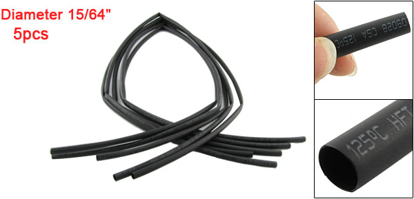 5 Pcs 6mm 15/64" Black Polyolefin Insulation Heat Shrink Tubing 1M