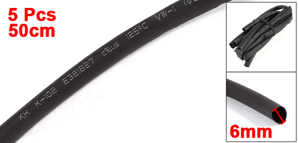 5 Pcs 6mm Dia. Heat Shrinkable Tube Shrink Tubing 50cm Black