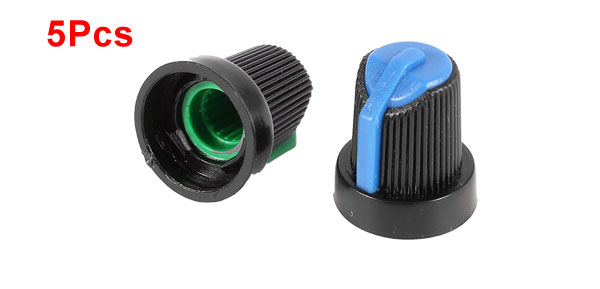 5 Pcs 6mm Dia Inner Hole Nonslip Potentiometer Knob Blue Green Black