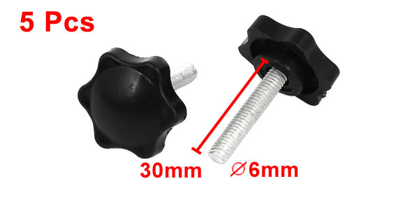 Product Name Clamping Knob Type Screw On Head Diameter 29mm / 1.2" Thread Length 30mm / 1.2" Thread Diameter 6mm / 0.24" Total Length 44mm/1.8" Color Silver Tone, Black Material Metal, Plastic Weight 58g Package Content 5 x Clamping Knob - Reviews